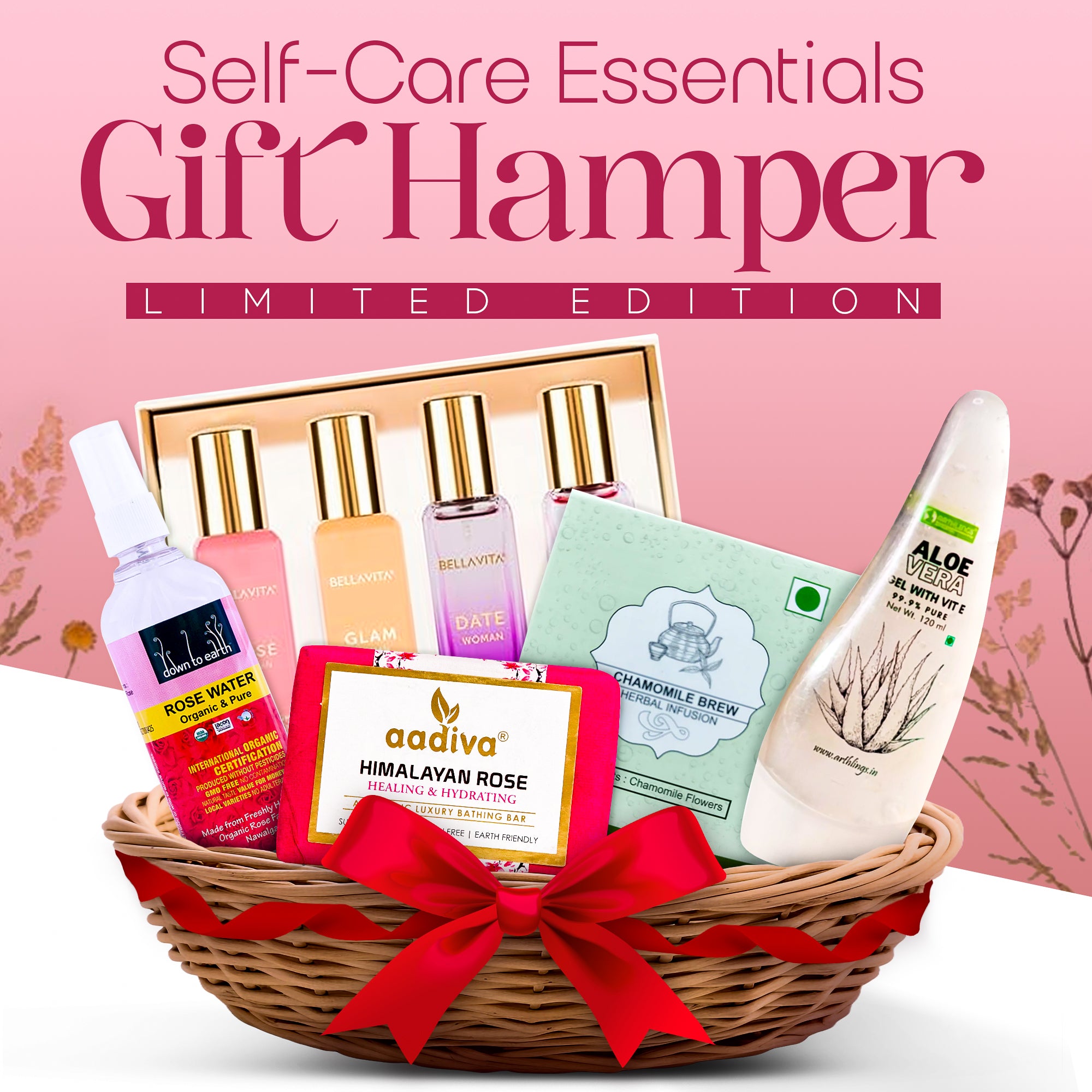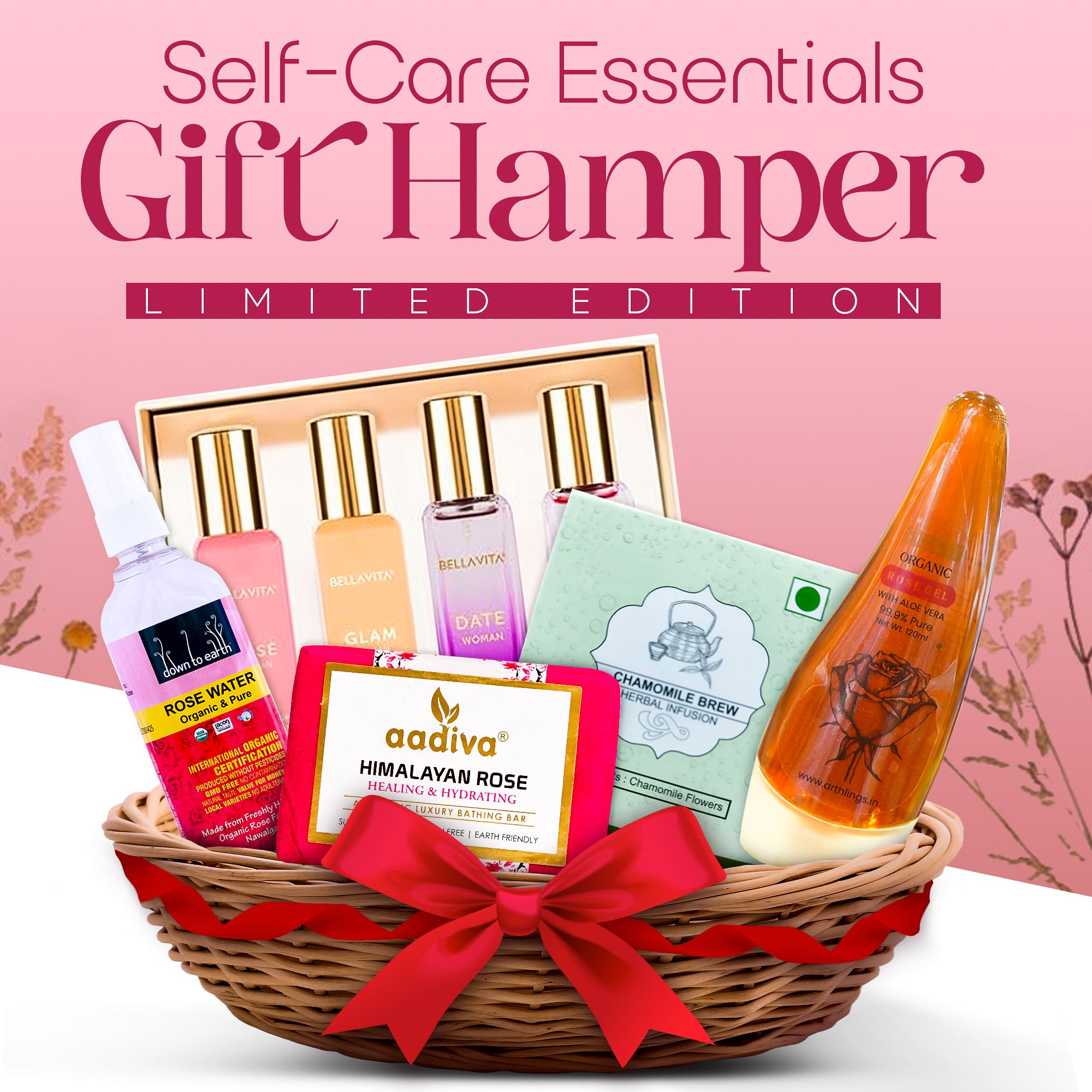 Unwind, refresh, and feel your best with our Self-Care Essentials Gift Hamper. This thoughtful set includes a soothing perfume, nourishing face and body gel, calming organic tea, refreshing rose water, and a rose soap bar. Perfect for gifting or a personal pick me up because self-care should feel this good.