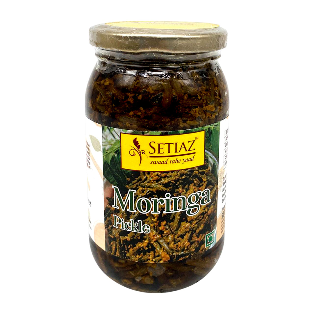 Handcrafted using traditional recipes, SETIAZ Moringa Pickle brings together the freshness of moringa and the zest of mustard oil and spices, creating a balance of spicy, sour, and savory flavors. Whether paired with parathas, dal-rice, or a simple khichdi, this pickle brings both flavor and nutrition to your meals.